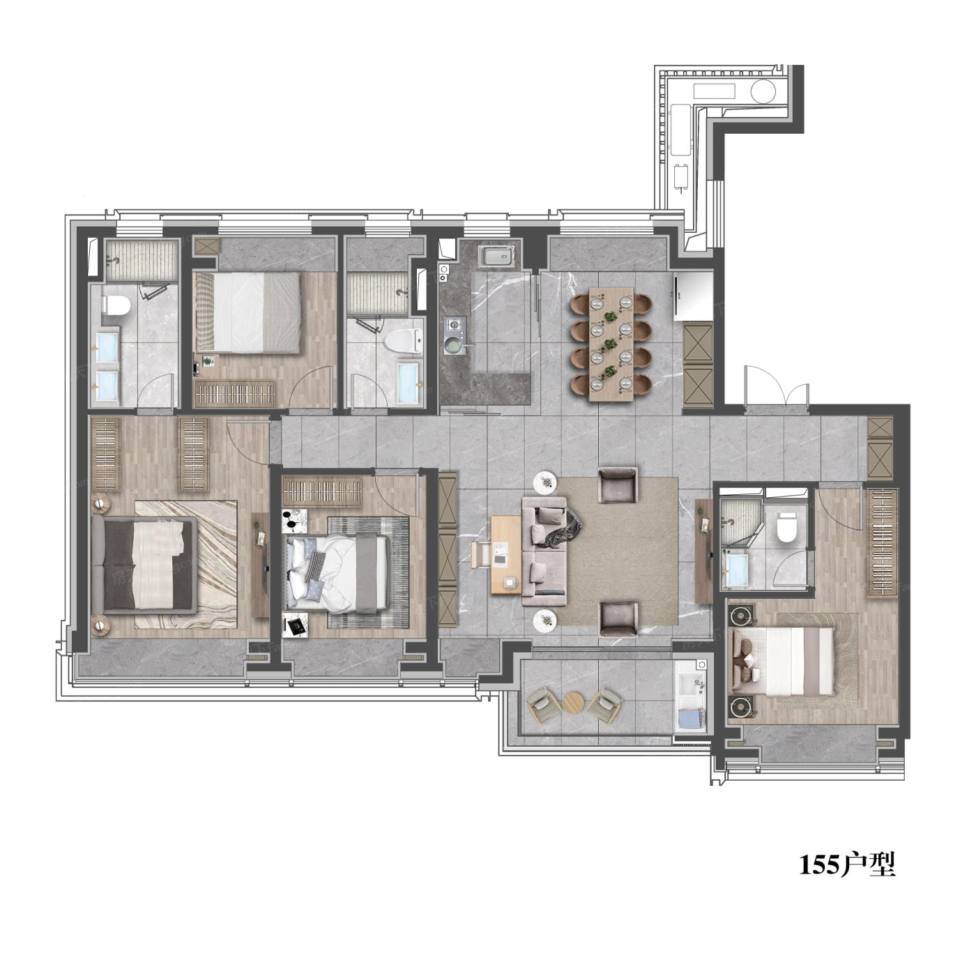 4室2厅1厨3卫 建面155.00㎡