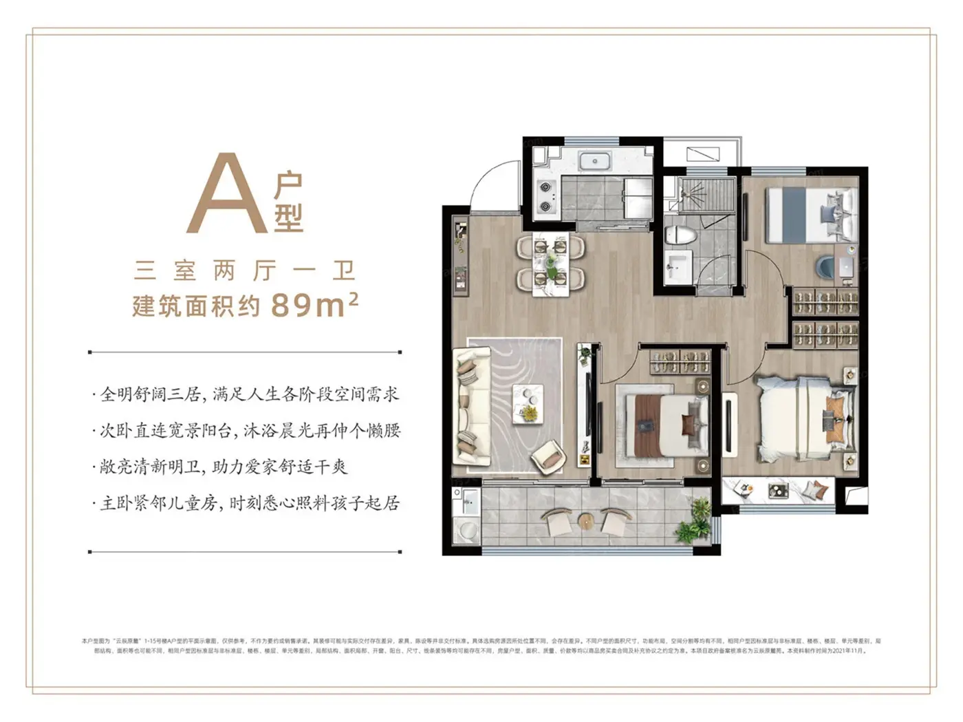 这个盘户型挺实用,89平和105平都是三房两厅一卫的设计,格局还算合理。开发商口碑过得去,不是特别出名但也没听说啥大问题,值得实地看看。